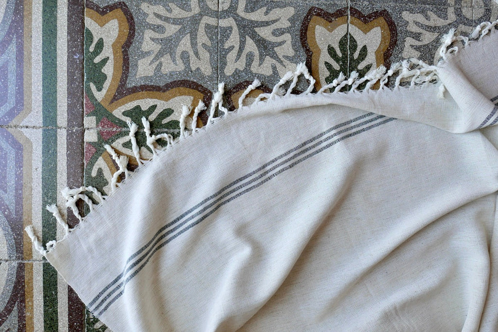 A minimalist design and a loose weave reveal the handweaving expertise involved in our Corfu towel. The loose weave also lends it a lovely texture and drape.