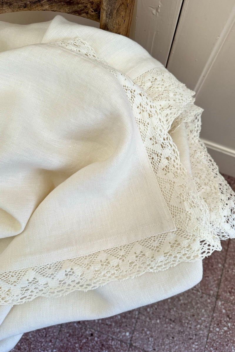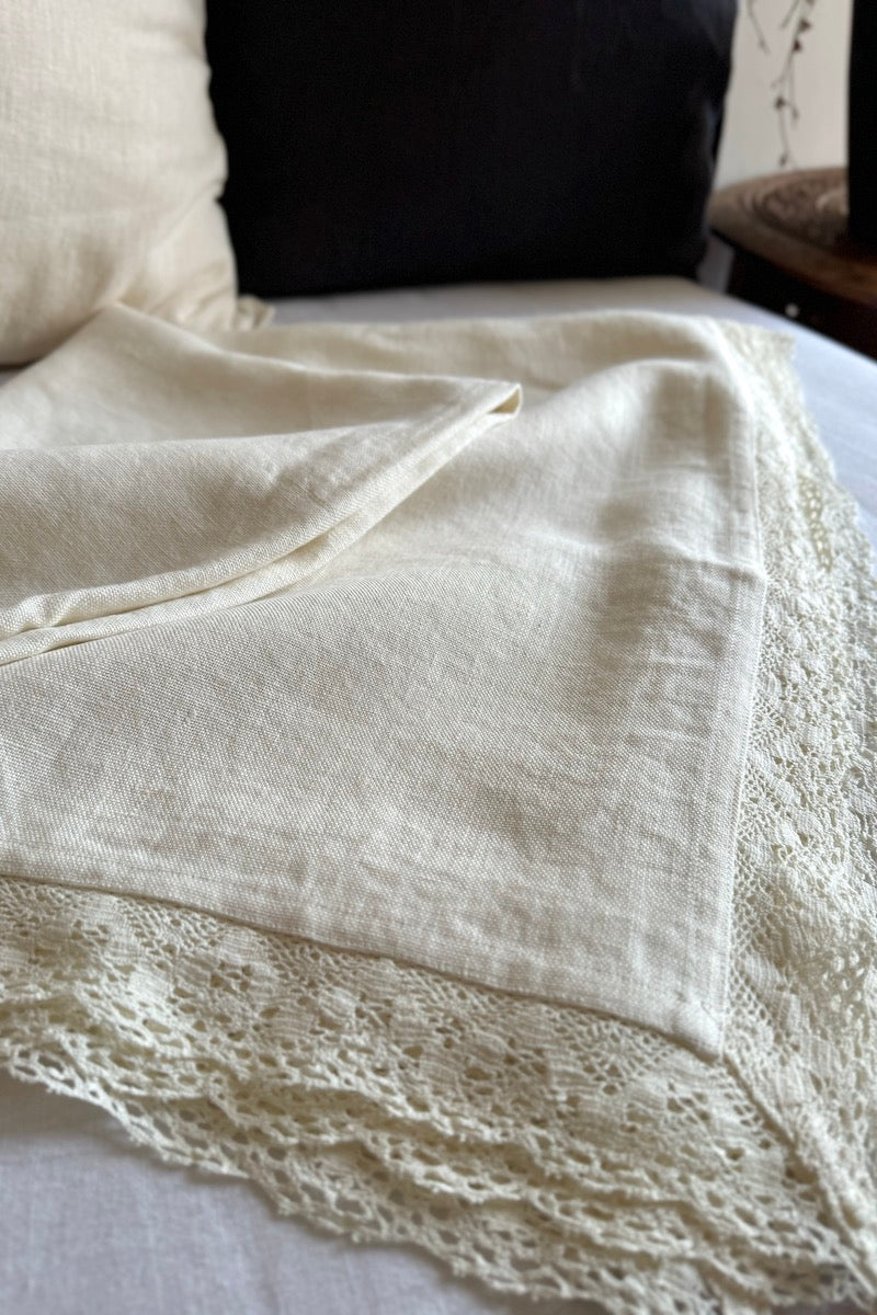 We wanted a timeless, elevated linen throw — the kind of textile heirloom that we can treasure forever. We found it in the Agata throw: cut from a single piece of super heavyweight Italian linen and lined on four sides with lace, it is expertly handmade with superb materials that will stand the test of time.