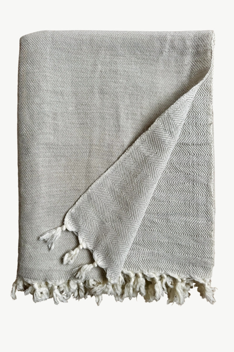 The Akya throw is woven from virgin wool in a subtle herringbone pattern.
