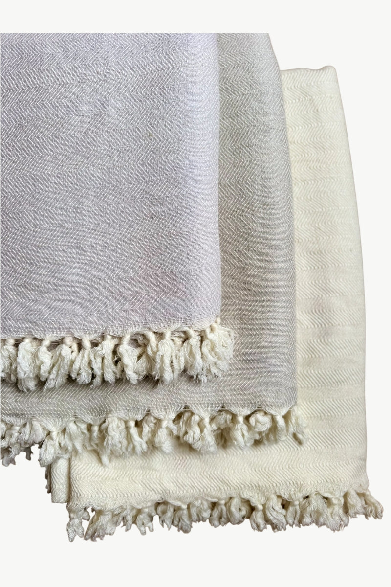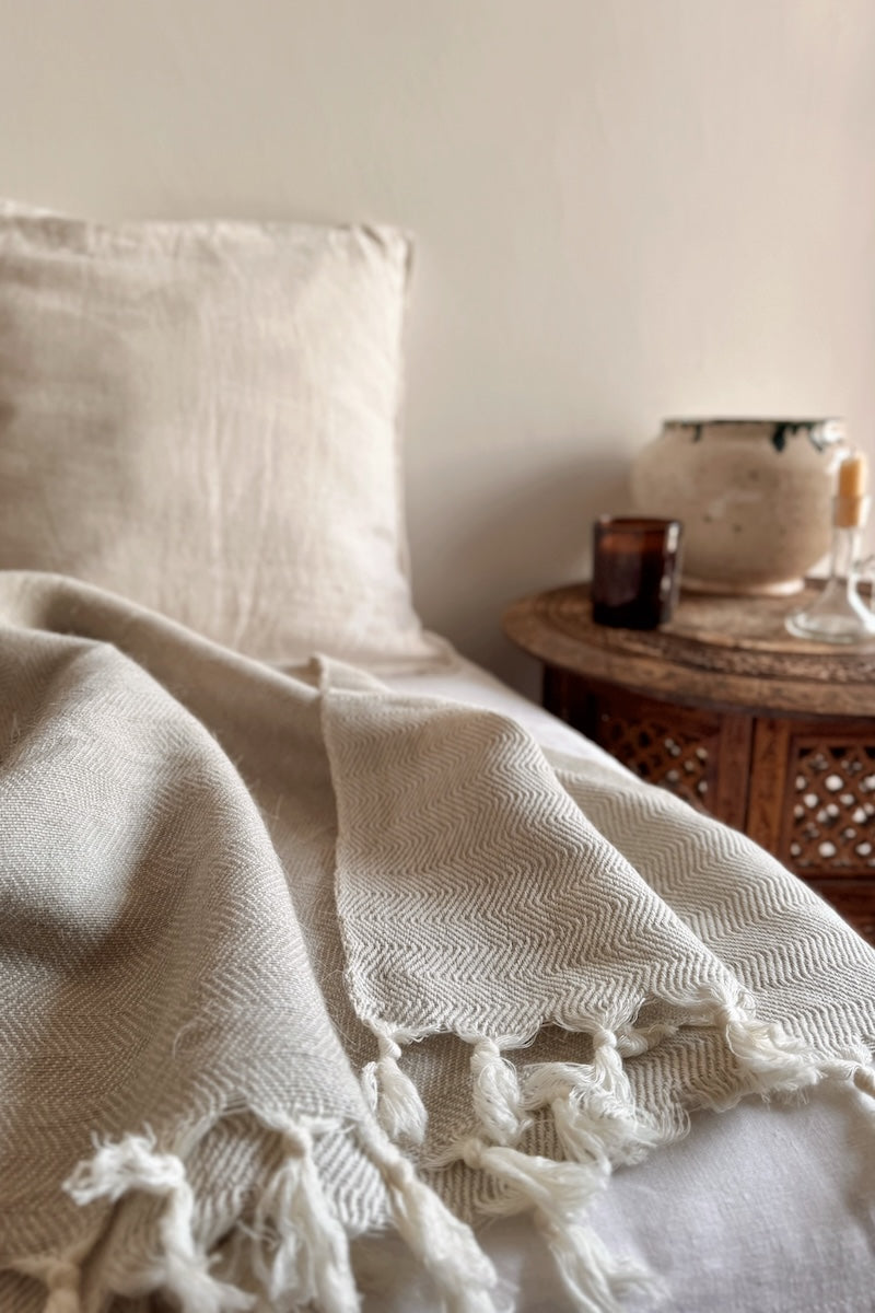 For the mid-seasons, we made a lighter version of our Akya wool throw. These throw blankets are woven on wooden handlooms in the ancient city of Antakya, between the Syrian border and the Levantine Mediterranean Sea. In one of Turkey's few remaining authentic handweaving ateliers, a family of master weavers continue to cultivate their centuries-old tradition.