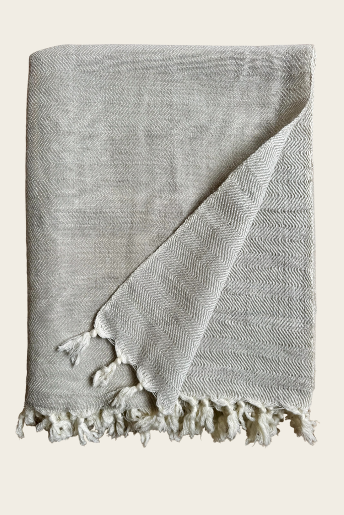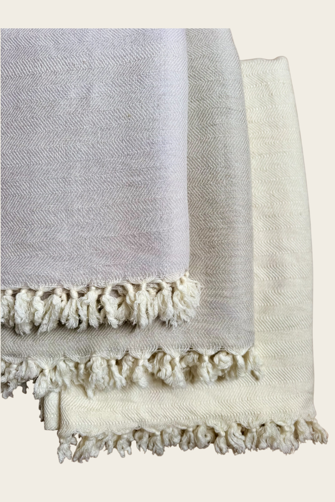 For the mid-seasons, we made a lighter version of our Akya wool throw. These throw blankets are woven on wooden handlooms in the ancient city of Antakya, between the Syrian border and the Levantine Mediterranean Sea. In one of Turkey's few remaining authentic handweaving ateliers, a family of master weavers continue to cultivate their centuries-old tradition.