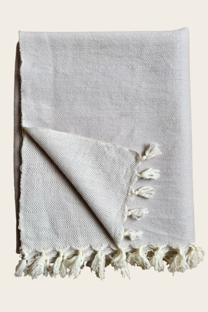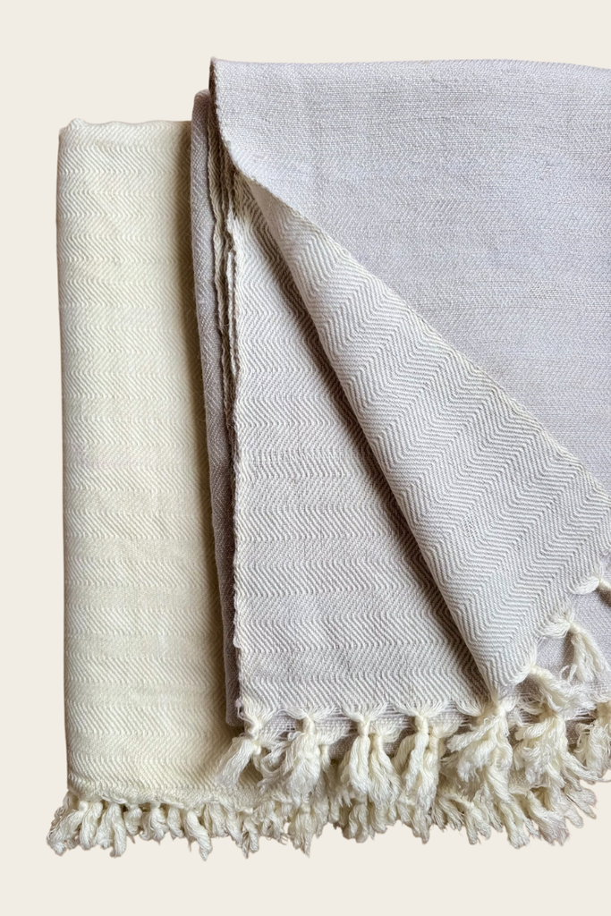 For the mid-seasons, we made a lighter version of our Akya wool throw. These throw blankets are woven on wooden handlooms in the ancient city of Antakya, between the Syrian border and the Levantine Mediterranean Sea. In one of Turkey's few remaining authentic handweaving ateliers, a family of master weavers continue to cultivate their centuries-old tradition.