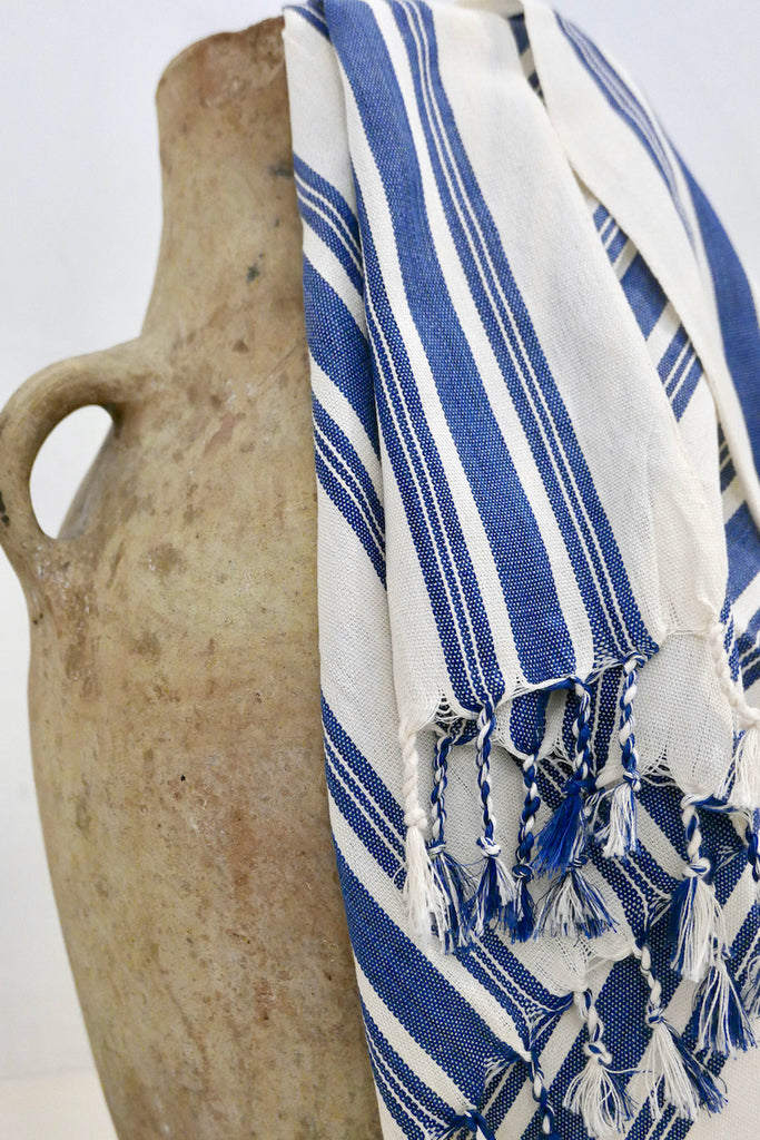 In the emblematic color scheme of the Aegean, the Sifnos towel is handwoven in silky soft cotton. Available in a full size towel, and a smaller version - perfect for kid, yoga, or as a large hand towel.